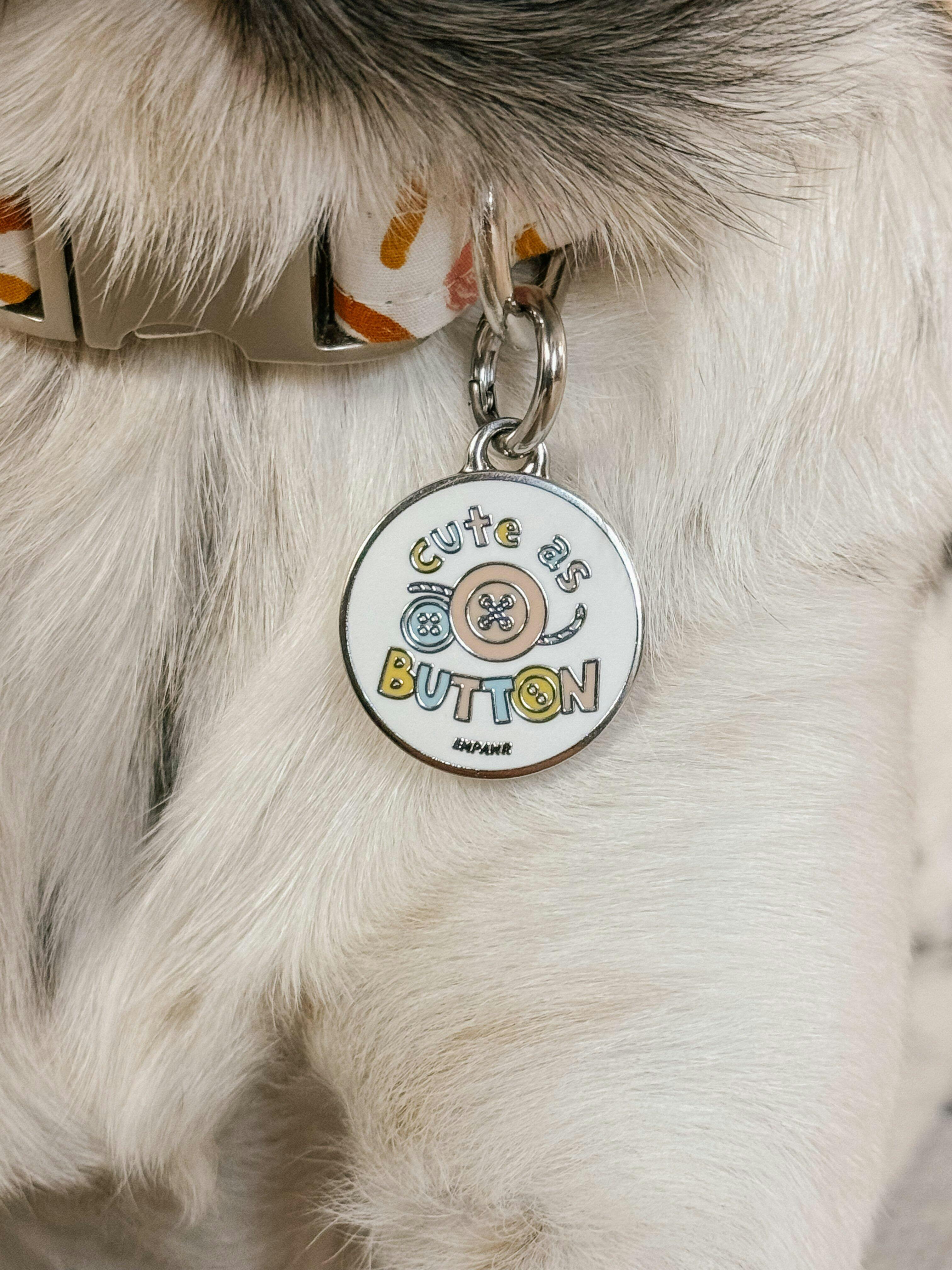 simply adorable, just like a button! EMPAWR dog tag - cute as button is a small detail that makes a big impact, showcasing their cuteness in a simple and endearing design. get your "cute as button" tag now!